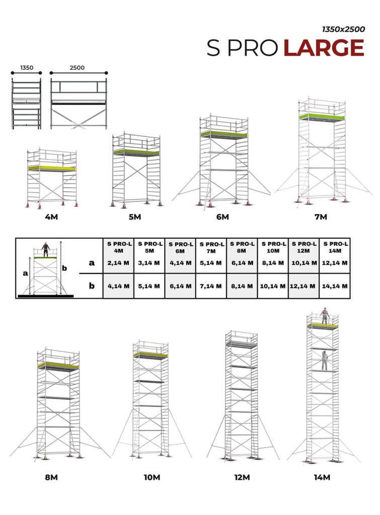 S Pro Large is a safe and modular aluminium mobile scaffold system offering working heights between 4–14 metres.