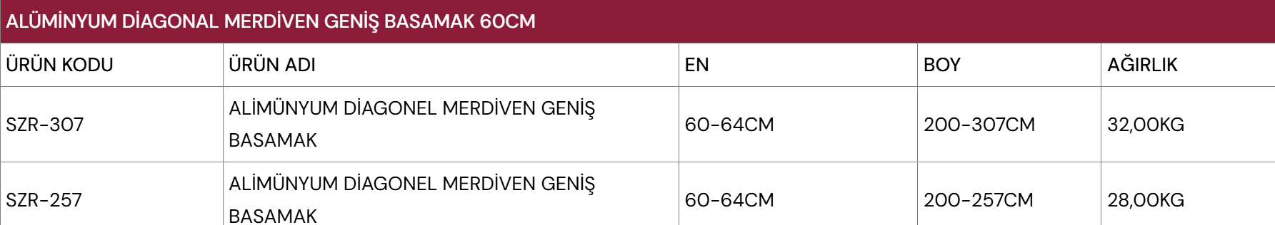 Alüminyum Diagonal Merdivenler