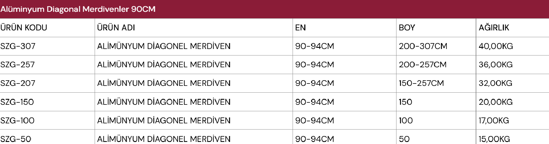 Alüminyum Diagonal Merdivenler