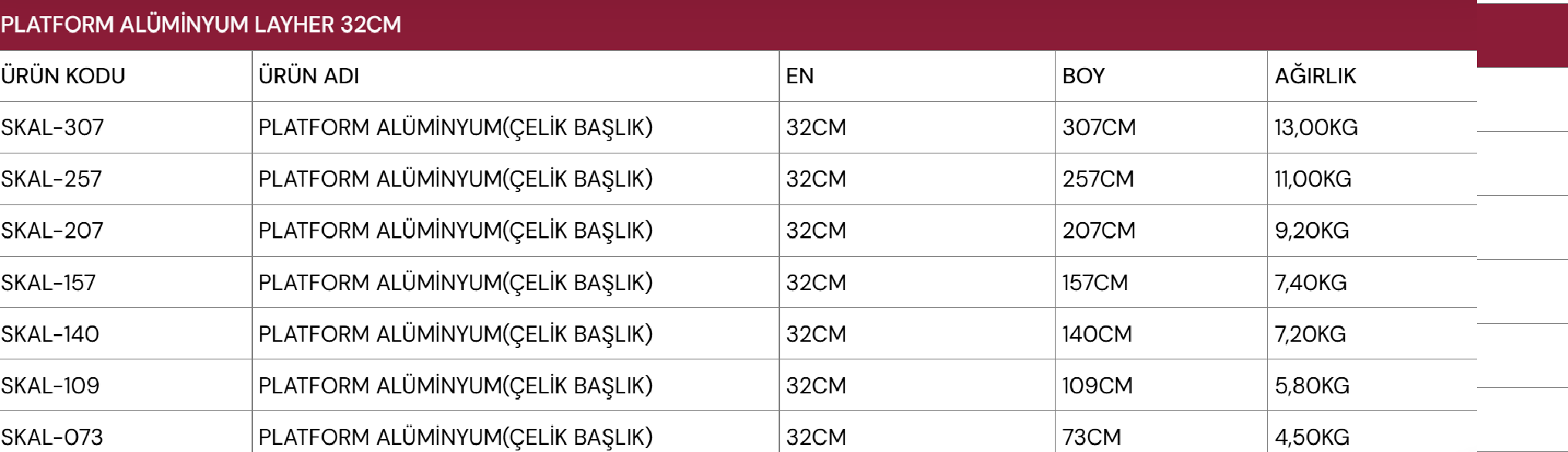 Alüminyum Platform
